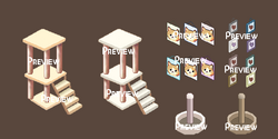 32x32 pixel art assets designed for decorating rooms and creating playful spaces. It includes cat-themed decorations, playground areas, and additional items to enhance the environment. All decorations in same page 32x32