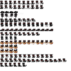 These tiny pixel cats are very small, low resolution characters designed for basic and simple games. Their minimal detail makes them easy to use, lightweight, and highly readable even in fast paced or small scale projects. The pack features many cat variations including Black, Light Brown, Brown, White, Bengal, Tree Color, Siamese, Egypt, Batman, Demonic, Christmas, Halloween, Pirate, and more.