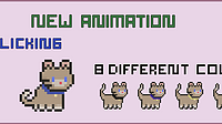 I'm happy to introduce a new cat animation—Licking Cat! Additionally, there are new color options for all animations, including collars in purple, pink, yellow, green, red, black, and orange. Enjoy...